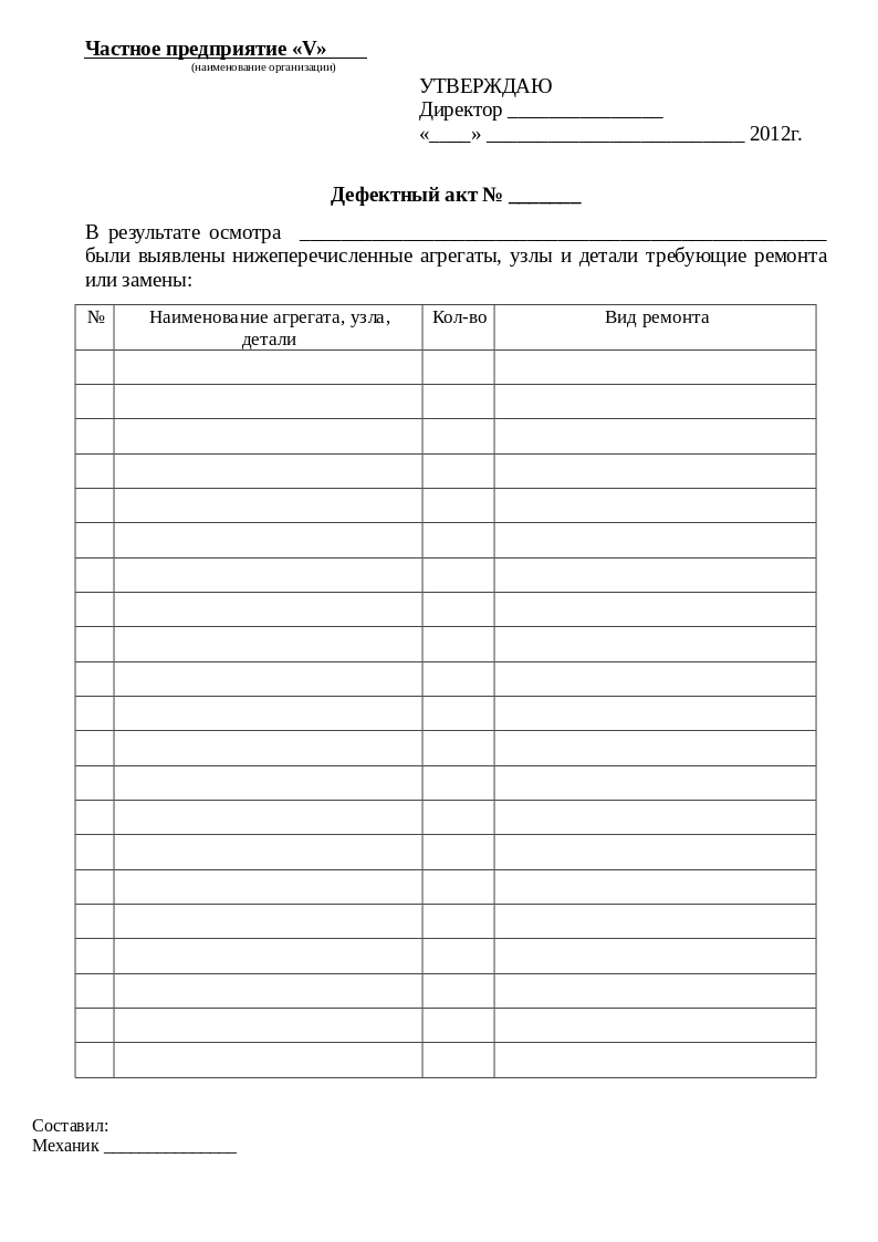 Ниже приведен пример фрагмента дефектовочного листа для наглядности: